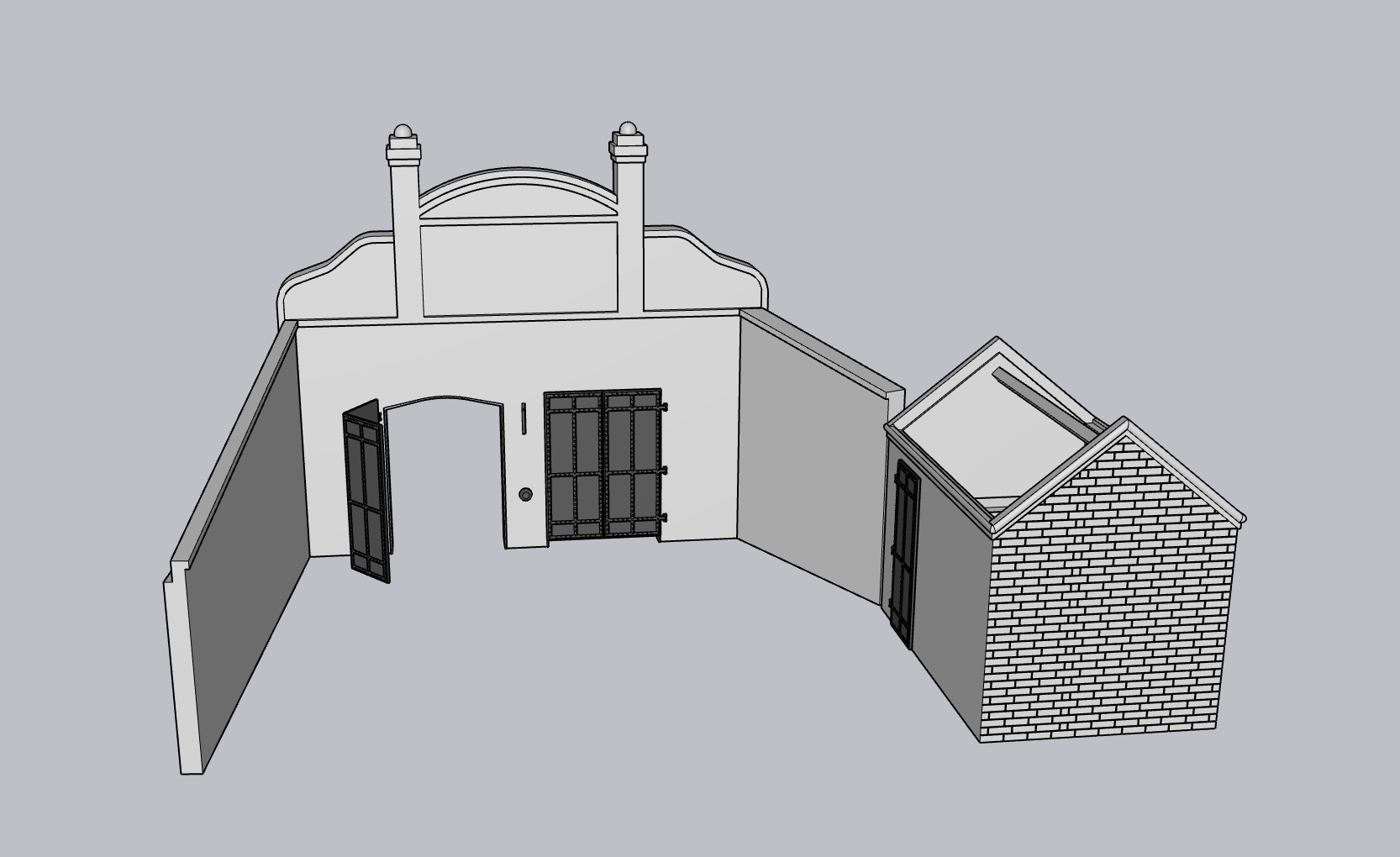 Work Started on the Sutro Tunnel in 1869 and was completed in 1878. This kit represents the cement portal face that was built in 1888, and still survives to this day. Doors, which would be opened and closed to regulate air flow, are included and positionable. The left side was for the rails while the right was for the water flume.