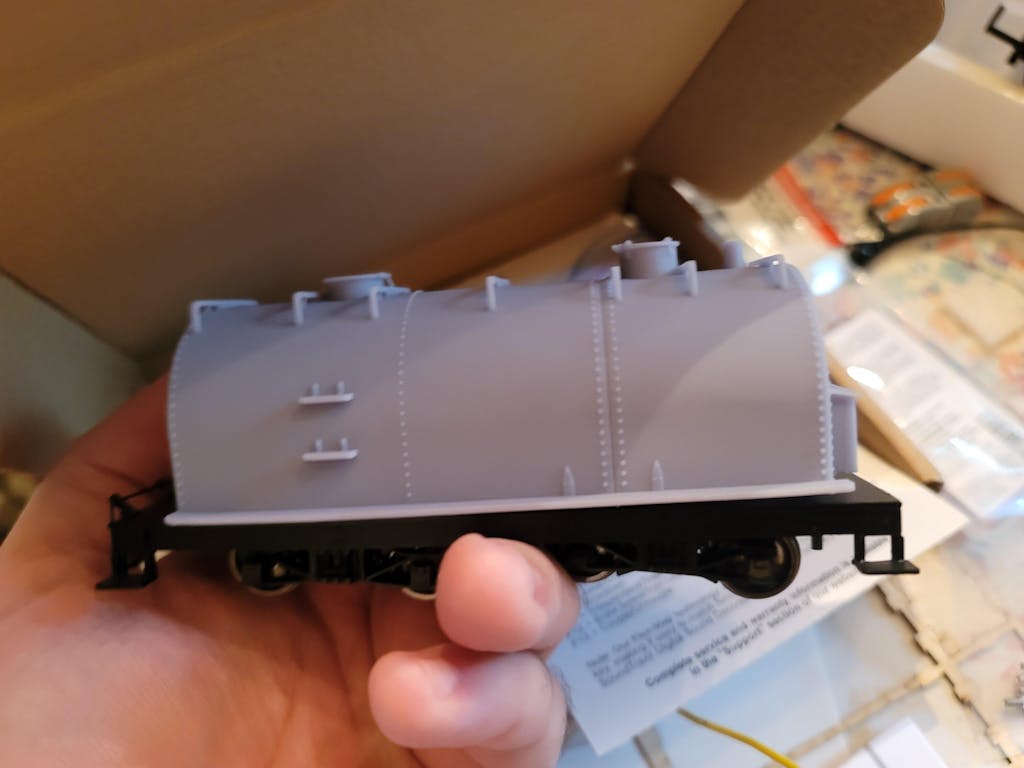 This is an On30 Southern Pacific style whaleback tender that fits the Bachmann On30 2-6-0 tender frame. It requires additional details to complete.