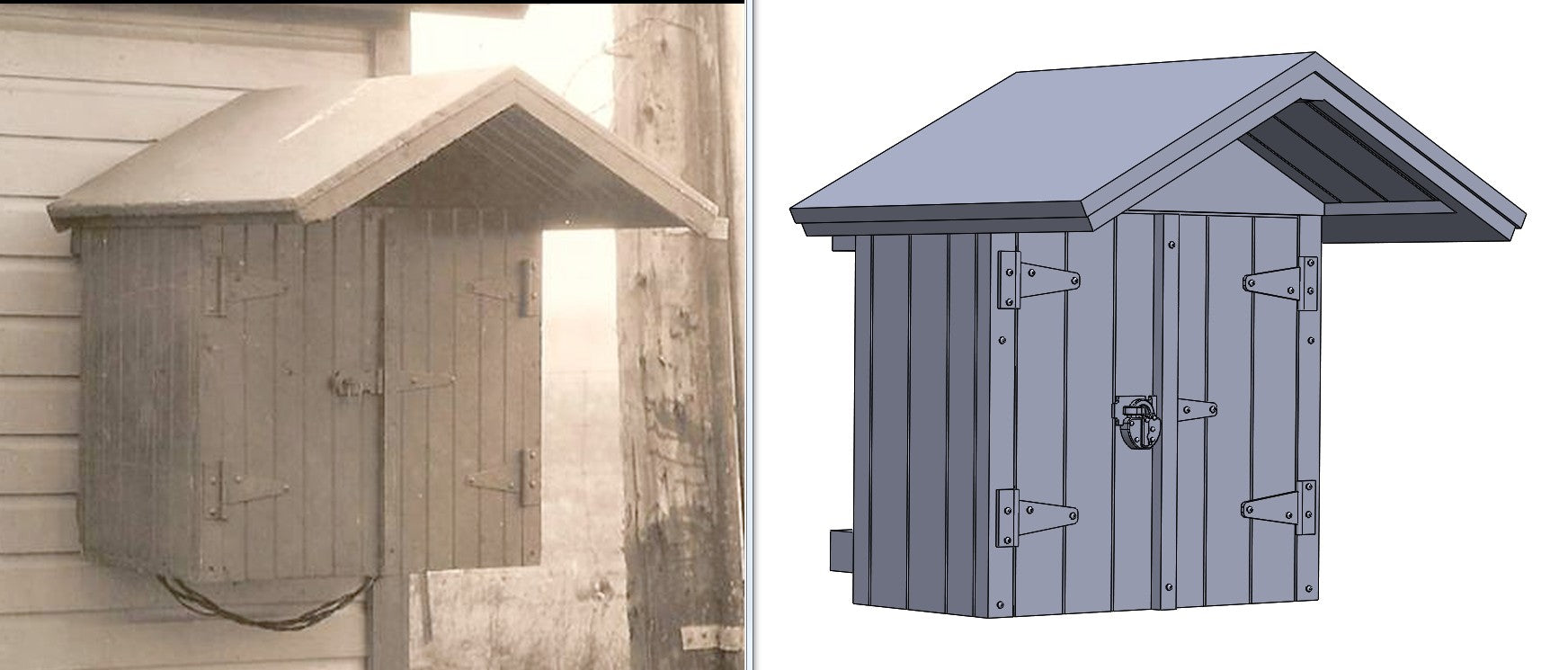 Two S scale Wood Phone Boxes 30 inches wide with long eaves.